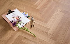 Coswick Английская ёлка 3-х слойная T&G шип-паз (90°) 1168-1893-10 Подснежник (Порода: Дуб)Порода дерева:Дуб